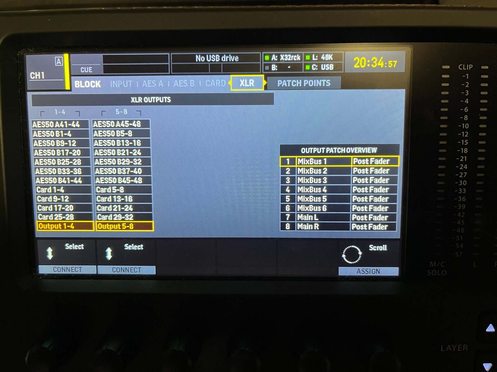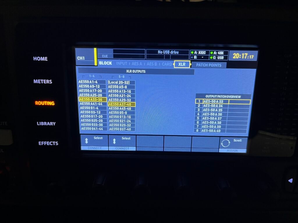 • Routing tab: XLR 1 – 8 > AES A 33 – 40