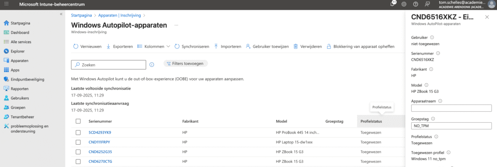 Geef als foutmelding in “Error 808 when uploading csv to intune” en klik op de pijl